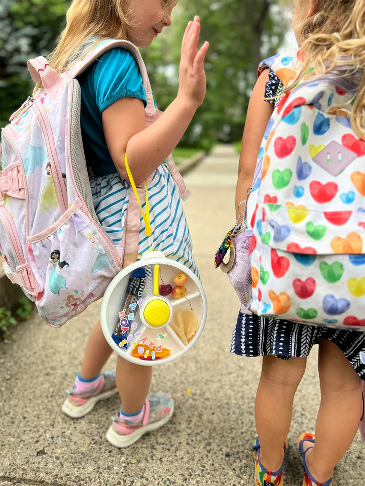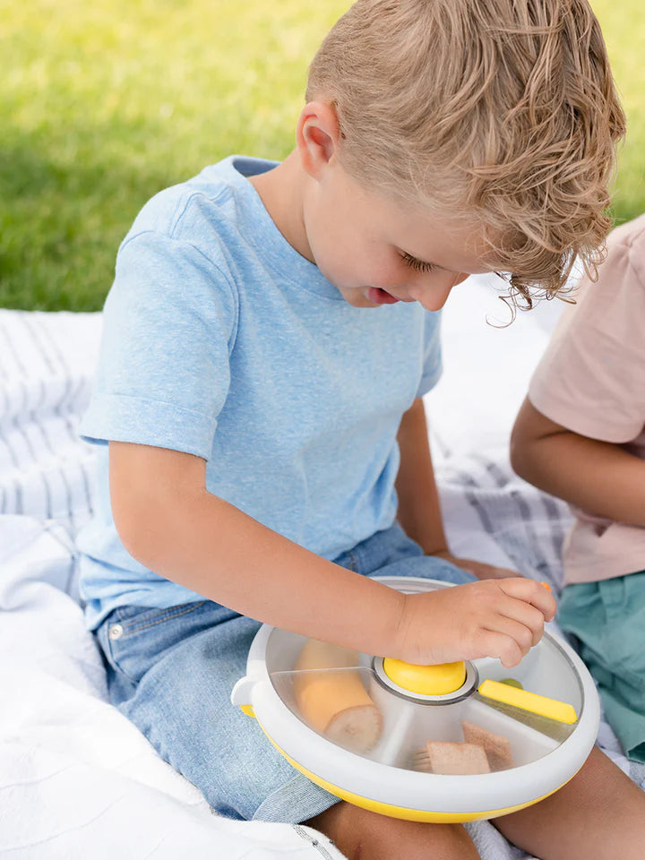Make snack time easy and fun with the Snack Spinner! Featuring 4 compartments and an interactive button, this lightweight container combines multiple bowls and cups into one simple, portable solution.