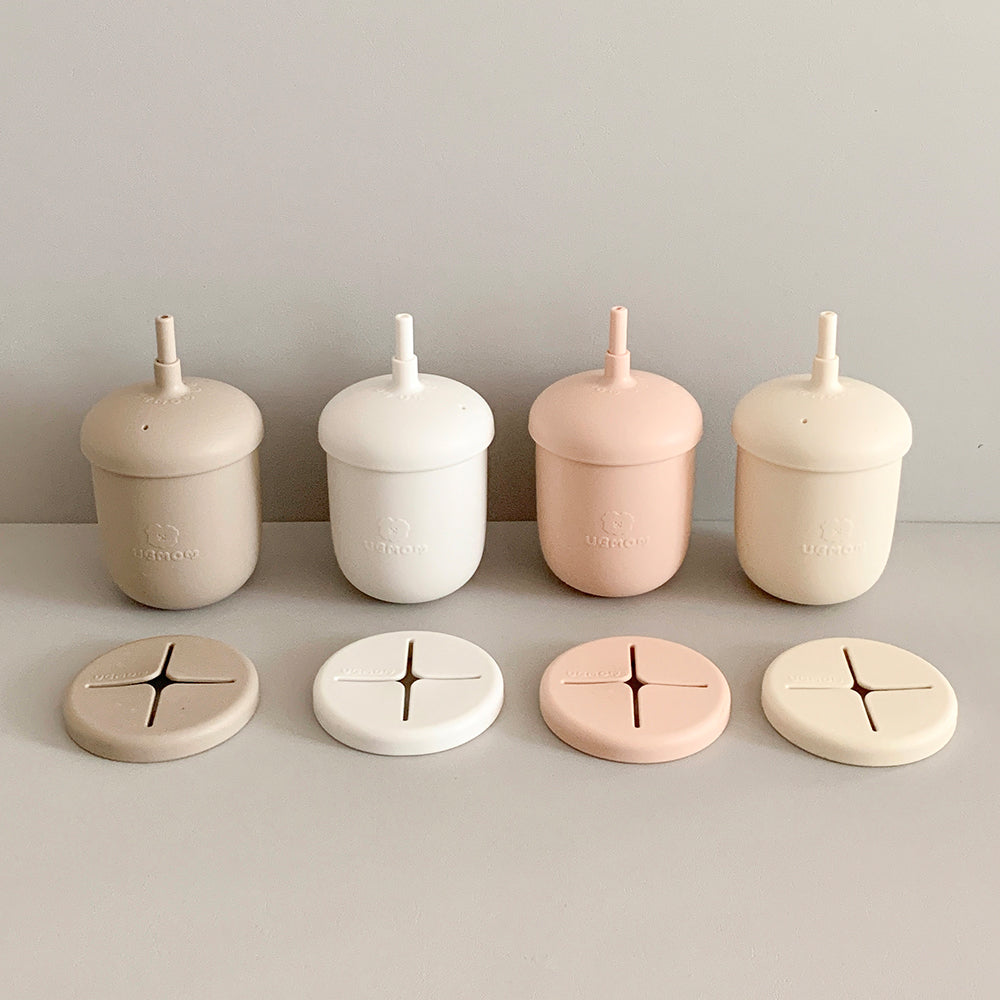 UBMOM 2-in-1 Silicone Training Straw Cup and Snack Cup (220ml)