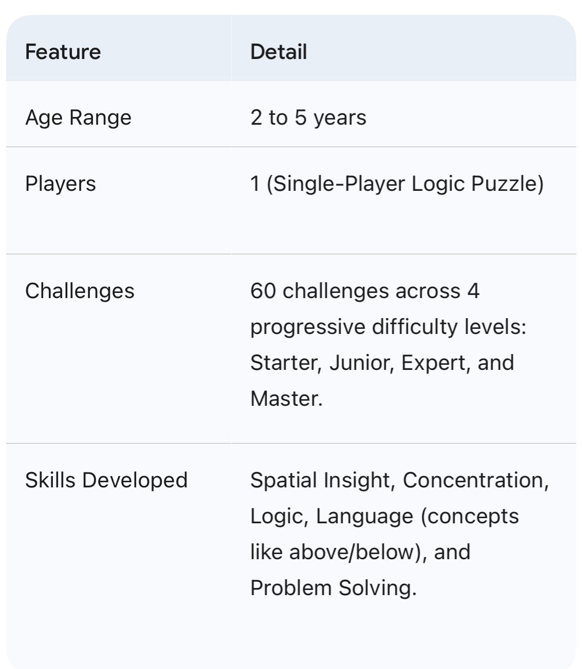 • Skill Focus: Spatial Insight, Logic, and Prepositions (e.g., above, behind, inside).