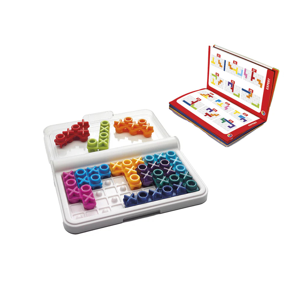 Give your brain some hugs and kisses! IQ XOXO challenges players to fit 10 colorful, double-sided "pentomino" pieces onto the game board. The twist? You must arrange the pieces so that an X is always next to an O (and vice versa) in every direction, creating a continuous chain of hugs and kisses across the grid.