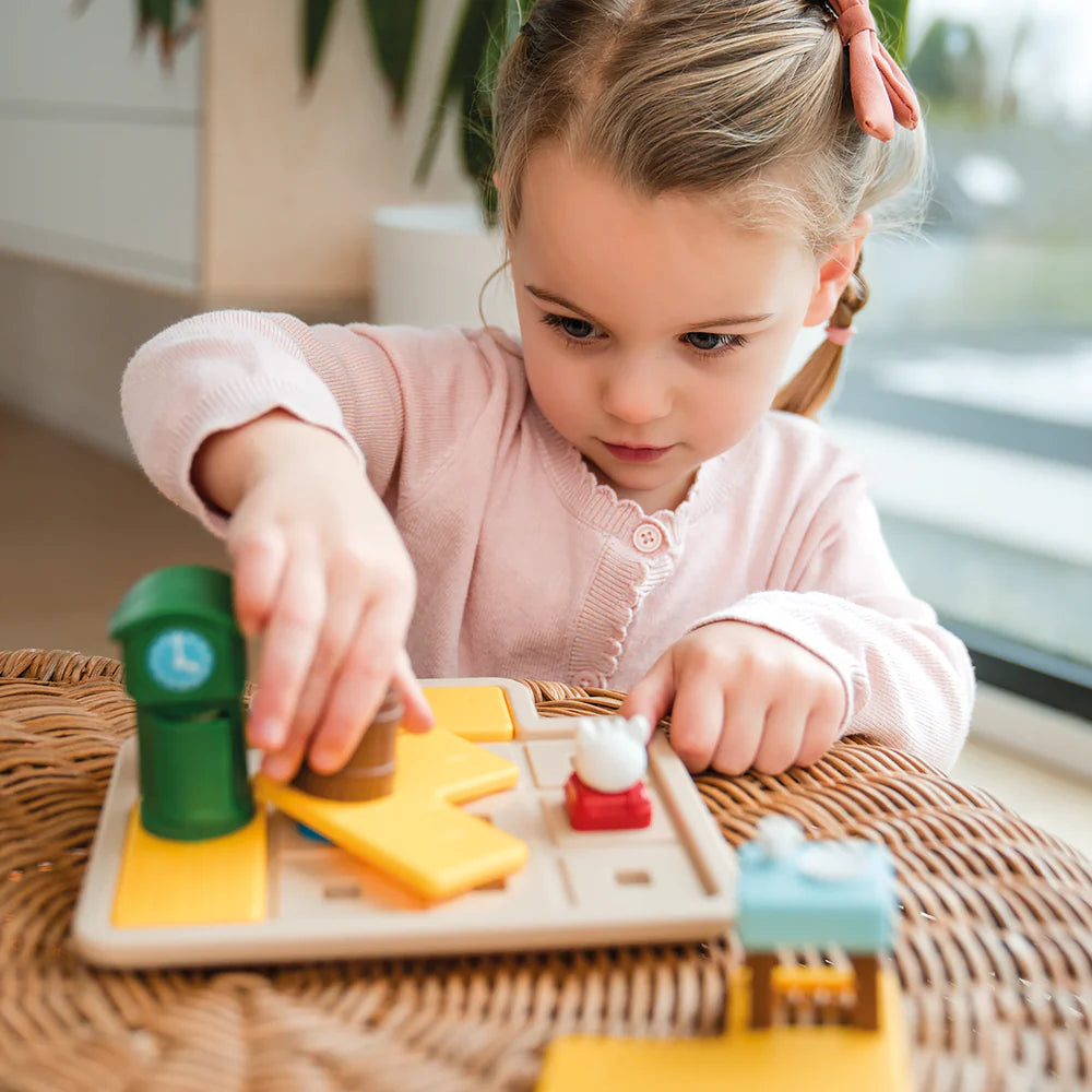 Help the 7 young goats hide under the furniture before the wolf finds them. But beware: not every goat fits under every piece of furniture. This fairy-tale game helps preschoolers develop their logic and deduction skills, as well as shape recognition and orientation. Solve the 48 challenges for ages 3 to 7 and enjoy the Grimm brothers' tale The Wolf and the Seven Goats with the beautiful storybook included.